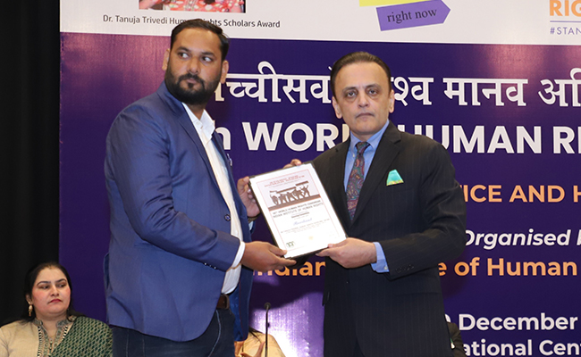 Mr. Ravikant, student of Indian Institute of Human Rights receiving the Gold medal for the academic year 2023-2025 on 10th December 2025.