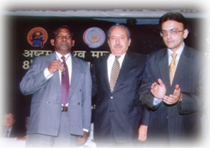 Dr. Santosh Sharma, student of Indian Institute of Human Rights receiving the Gold Medal for the academic year 2003-2005 on 10th December 2005.