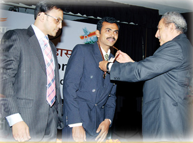 Mr. E Prabhu, student of Indian Institute of Human Rights receiving the Gold Medal for the academic year 2005-2007 on 10th December 2007..