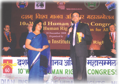 Dr. Neeta Yadav, student of Indian Institute of Human Rights receiving the Gold Medal for the academic year 2006-2008 on 10th December 2008.