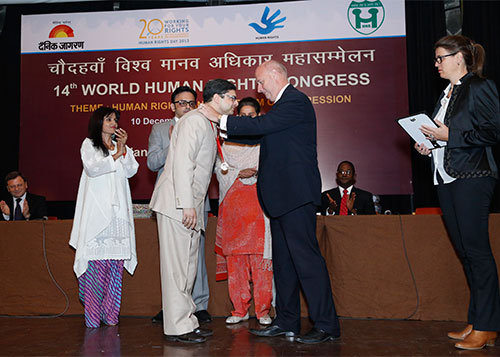 Mr. Puneet Kundal, student of Indian Institute of Human Rights receiving the Gold Medal for the academic year 2011-2013 on 10th December 2013.