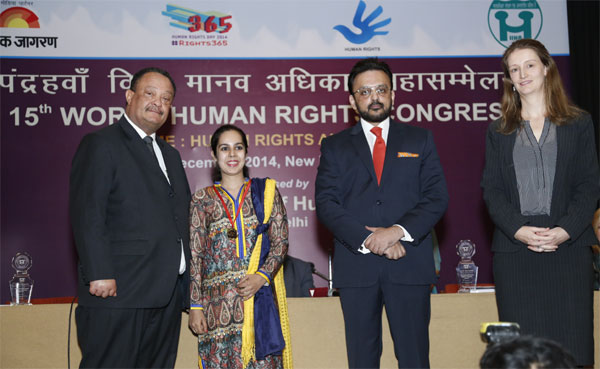 Ms. Neha Sharma, student of Indian Institute of Human Rights receiving the Gold Medal for the academic year 2012-2014 on 10th December 2014.