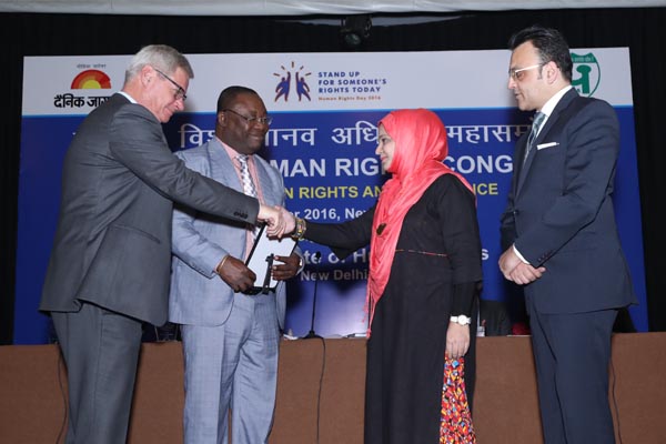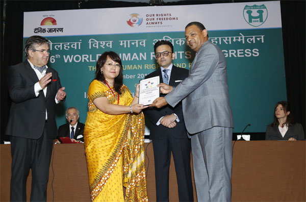 Ms. Tahira Yadegar, student of Indian Institute of Human Rights receiving the Gold Medal for the academic year 2014-2016 on 10th December 2016.