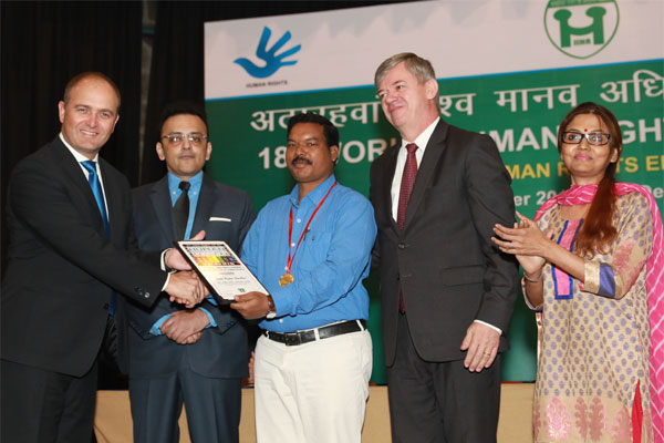 Mr. Lalit Kumar Bardhan, student of Indian Institute of Human Rights receiving the Gold Medal for the academic year 2015-2017 on 10th December 2017.
