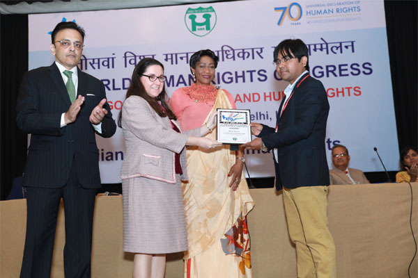 Mr. Arun Verma, student of Indian Institute of Human Rights receiving the Gold medal for the academic year 2016-2018 on 10th December 2018.