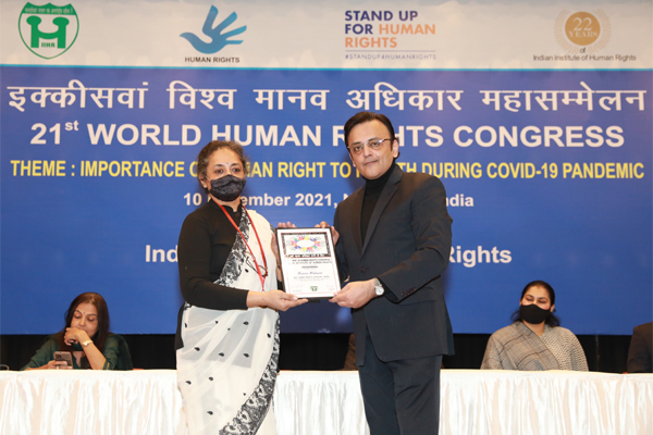 Ms. Monica Mahajan, student of Indian Institute of Human Rights receiving the Gold medal for the academic year 2018-2020 on 10th December 2021.