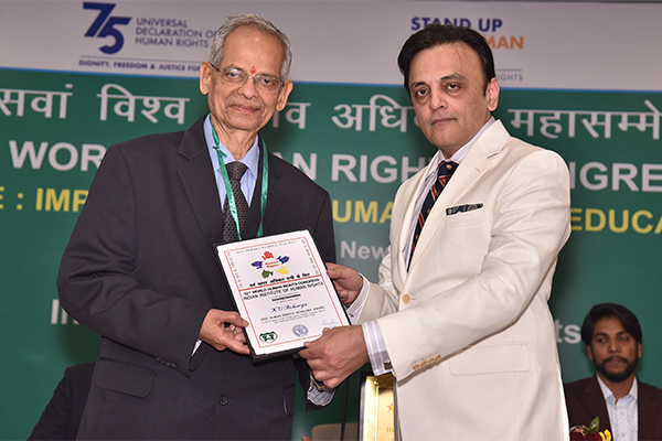 Mr. K.V Acharya, student of Indian Institute of Human Rights recveiving the Gold medal for the academic year 2019-2021 on 10 December 2022.