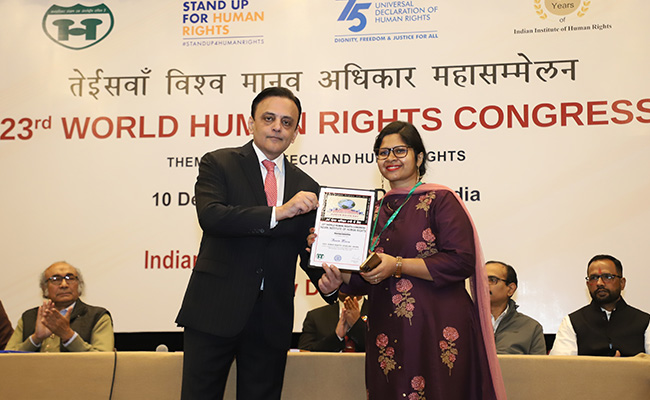 Ms. Reema Malik, student of Indian Institute of Human Rights receiving the Gold medal for the academic year 2017-2019 on 10th December 2019.